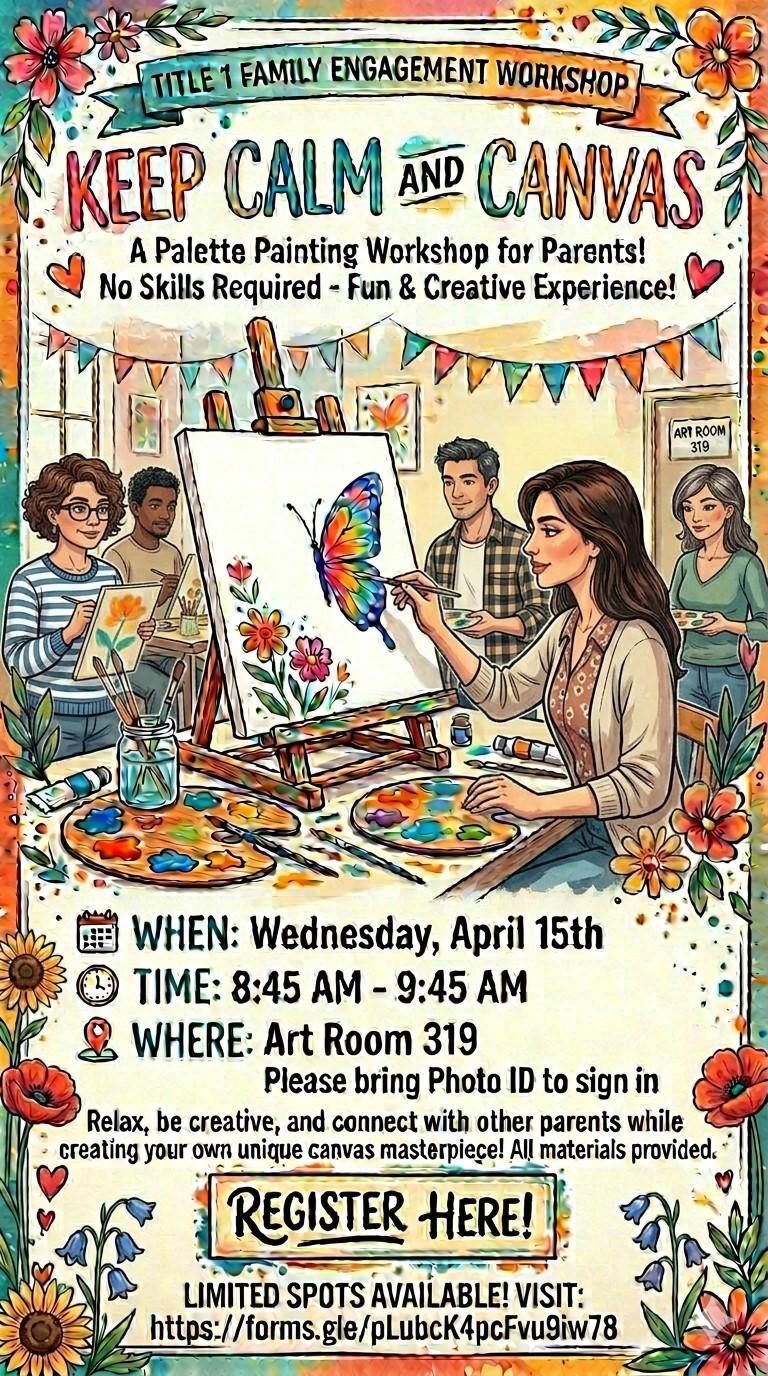4/15/26 Title 1 Family Engagement Art Workshop: Keep Calm and Canvas!